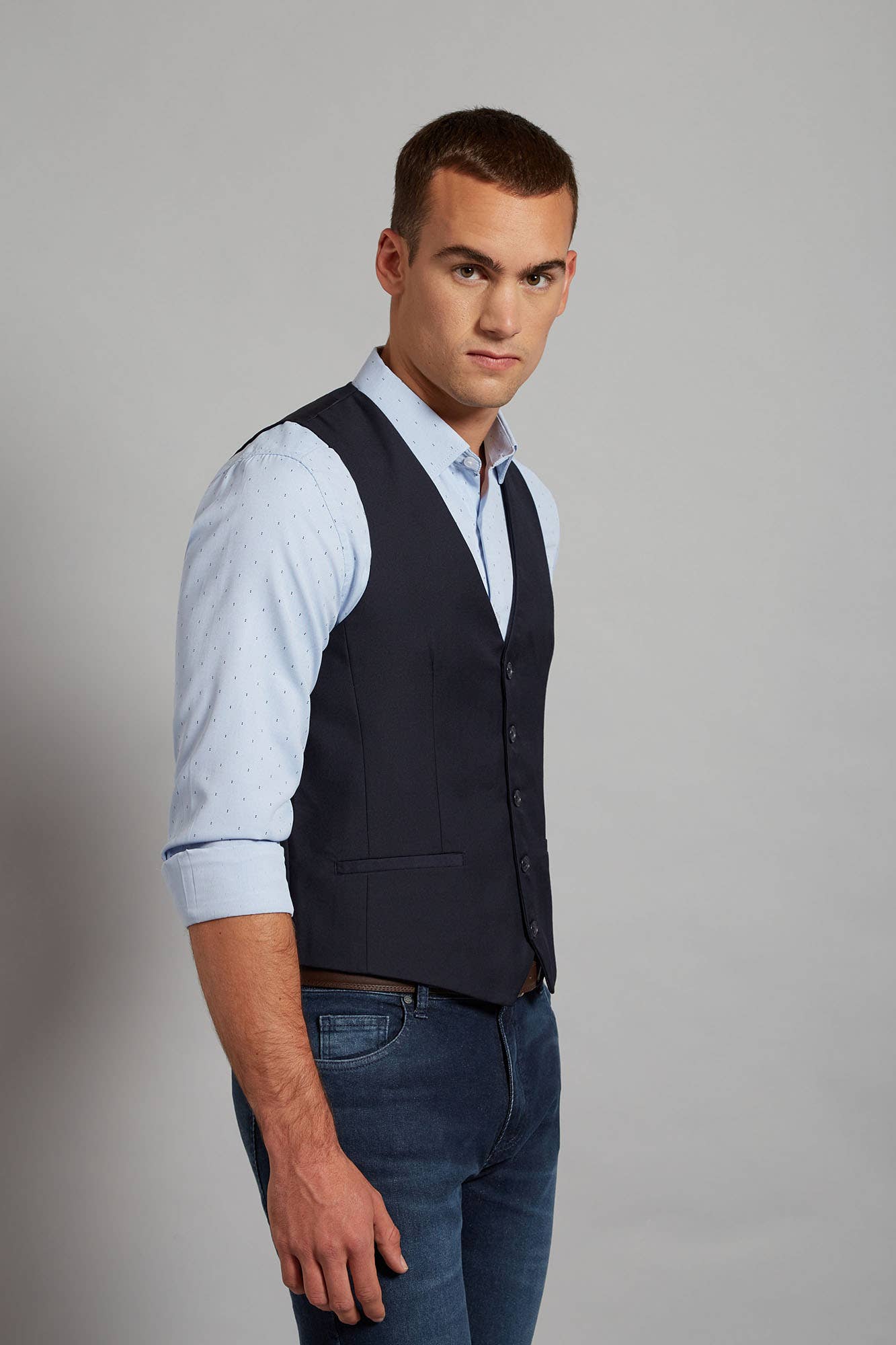 Chaleco Vestir Ss100 Liso Fit Azul Marino
