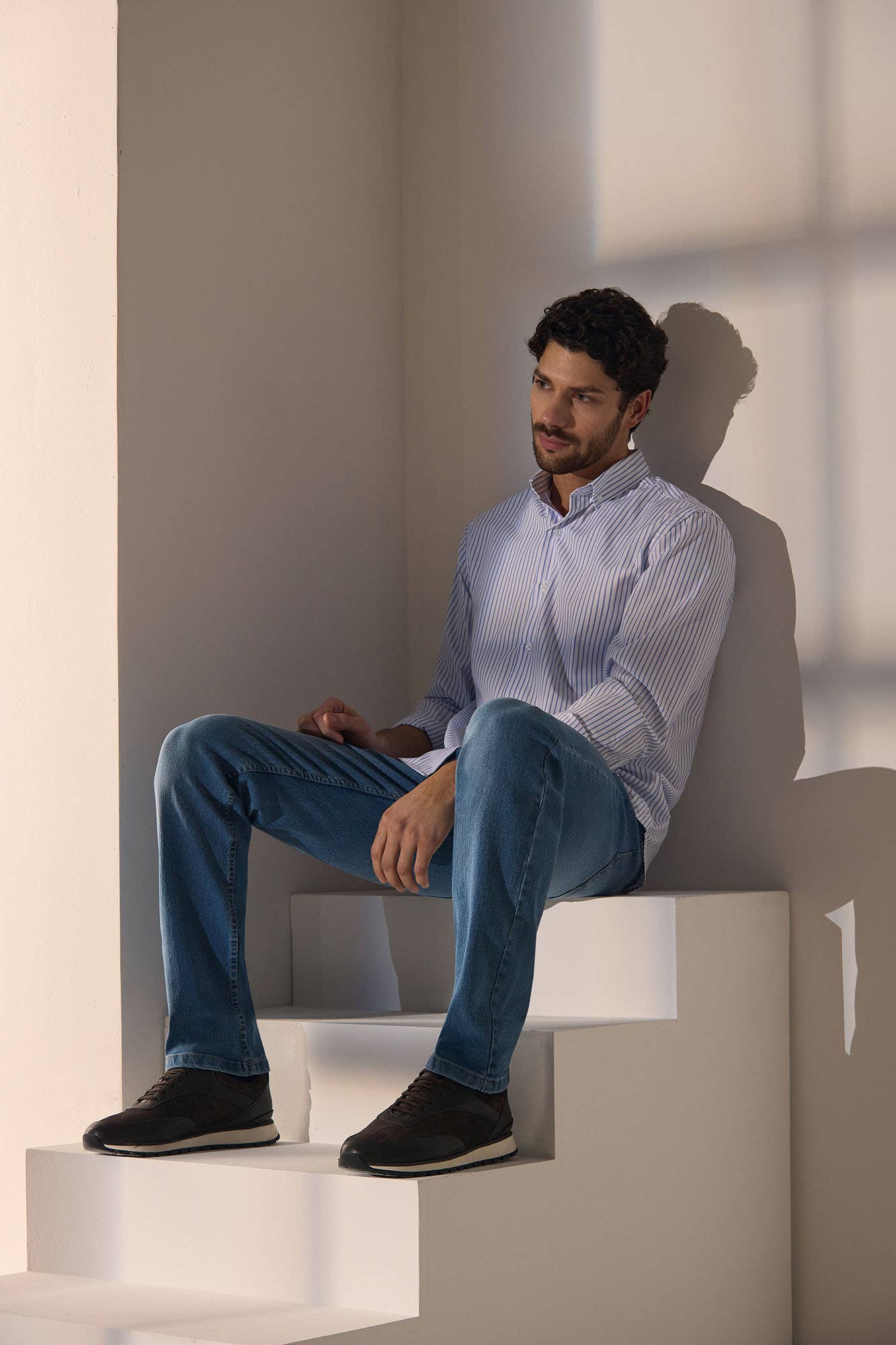 Camisa Sport Estampada Slim Celeste